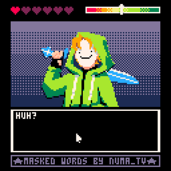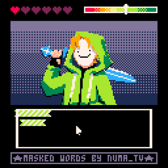 Masked Words is a prototype DreamSMP dating-sim visual novel where... well words are masked! Use the mouse to remove a strip of tape to change the outcome of the story~There are 3 endings! Can you get them all?
